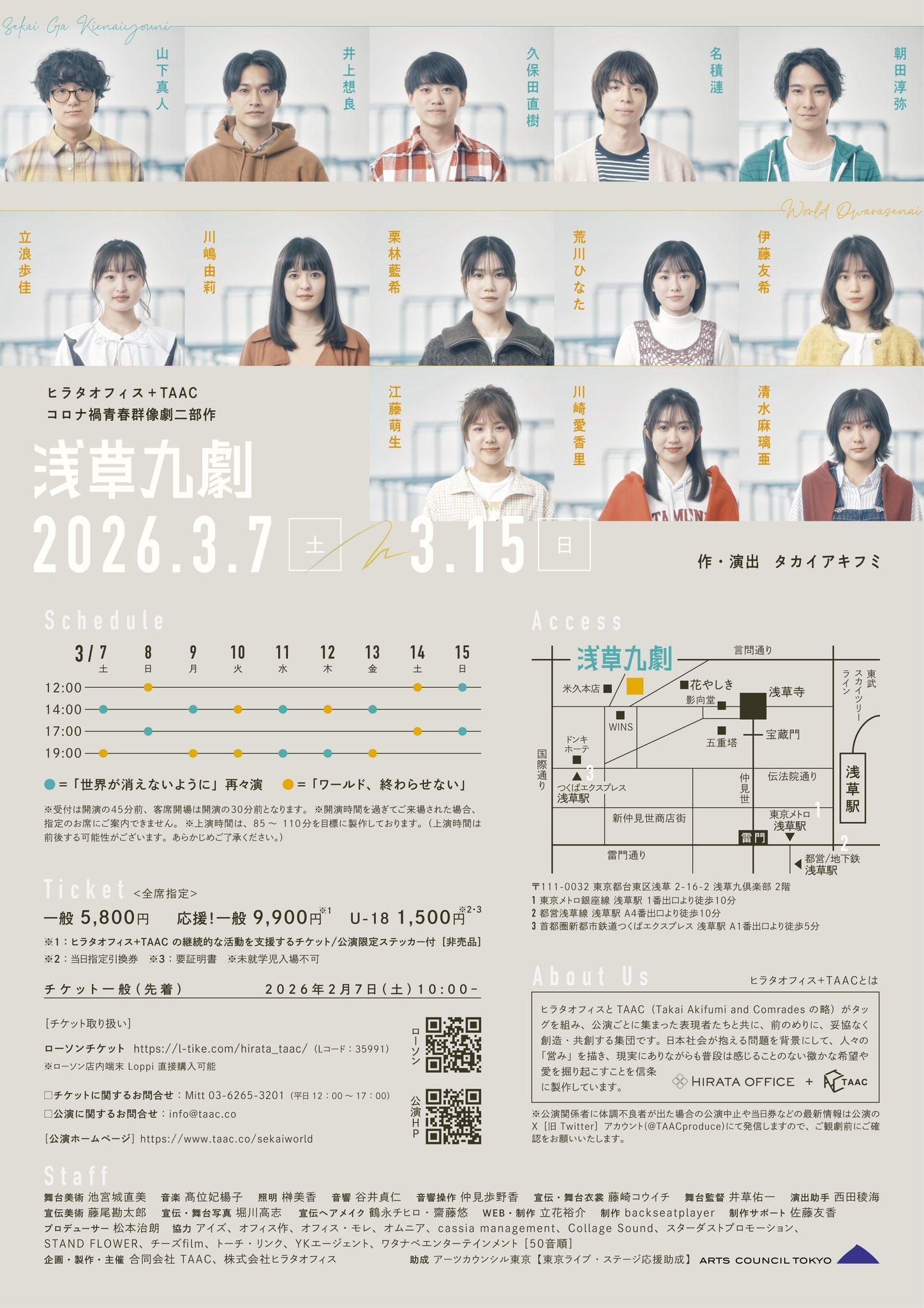 ヒラタオフィス+TAACコロナ禍青春群像劇二部作 「世界が消えないように」&「ワヒラタオフィス+TAAC |